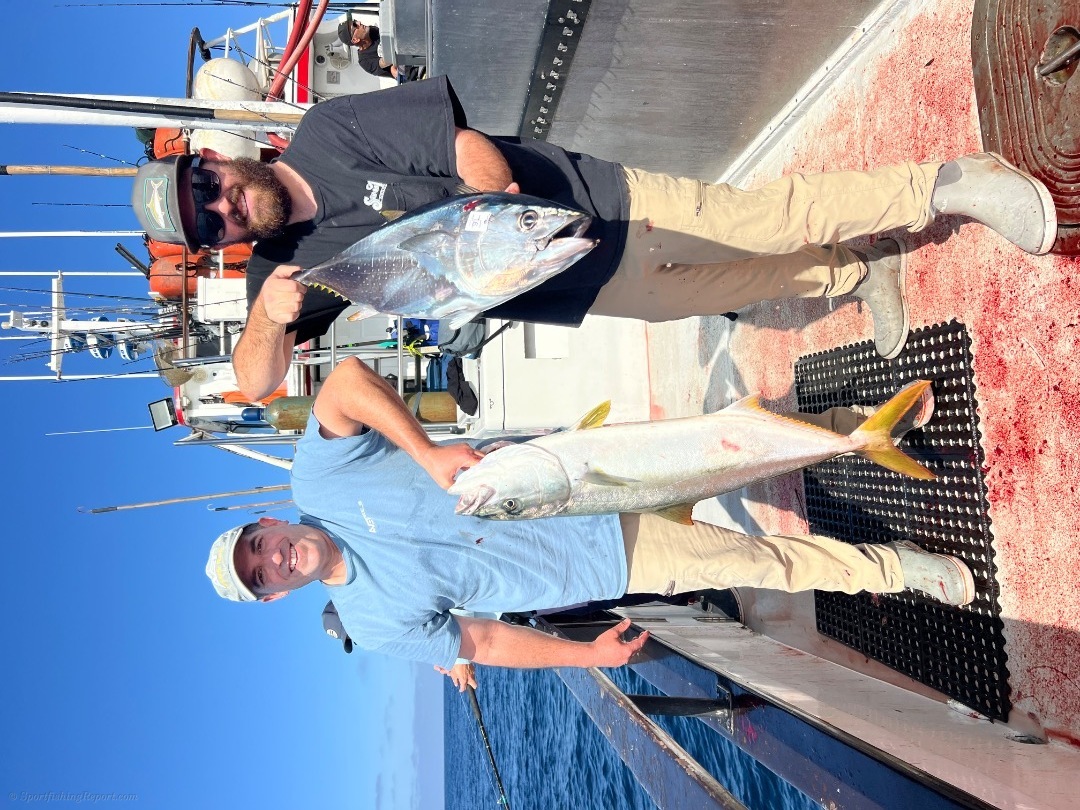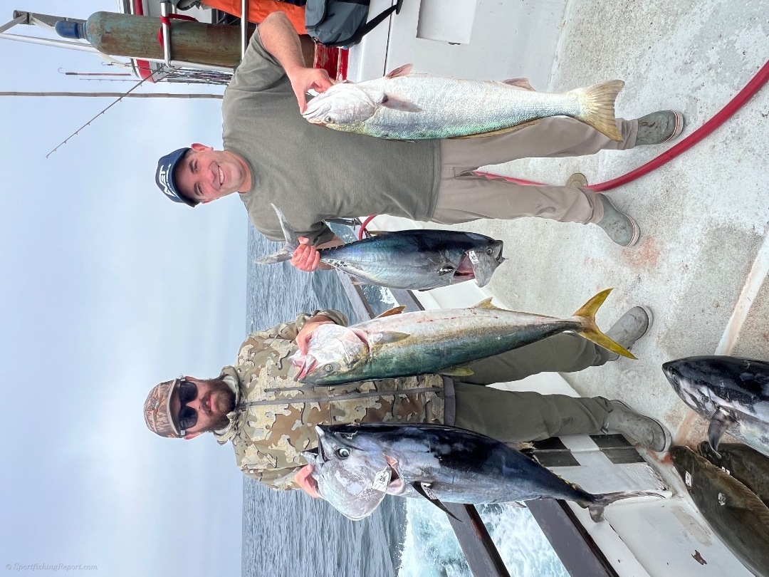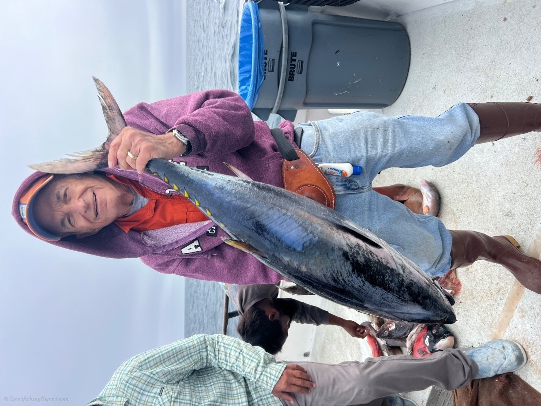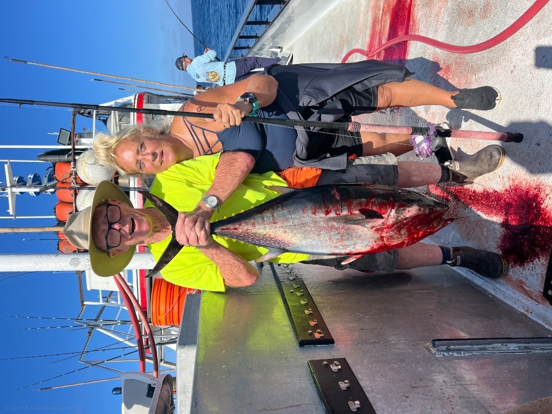 We started out tuna fishing on our 2 1/2 day trip. We found a school of 25 to 40 pound fish. We landed 25 of them. We mailed around the rest of the day trying to come up with more tuna, but we're unable to complete the task. We then took off for the island where we ran into white Seabass and yellowtail and all the items that you can catch at the island an excellent trip out on the water for our 16 guys on our 2 1/2 day trip