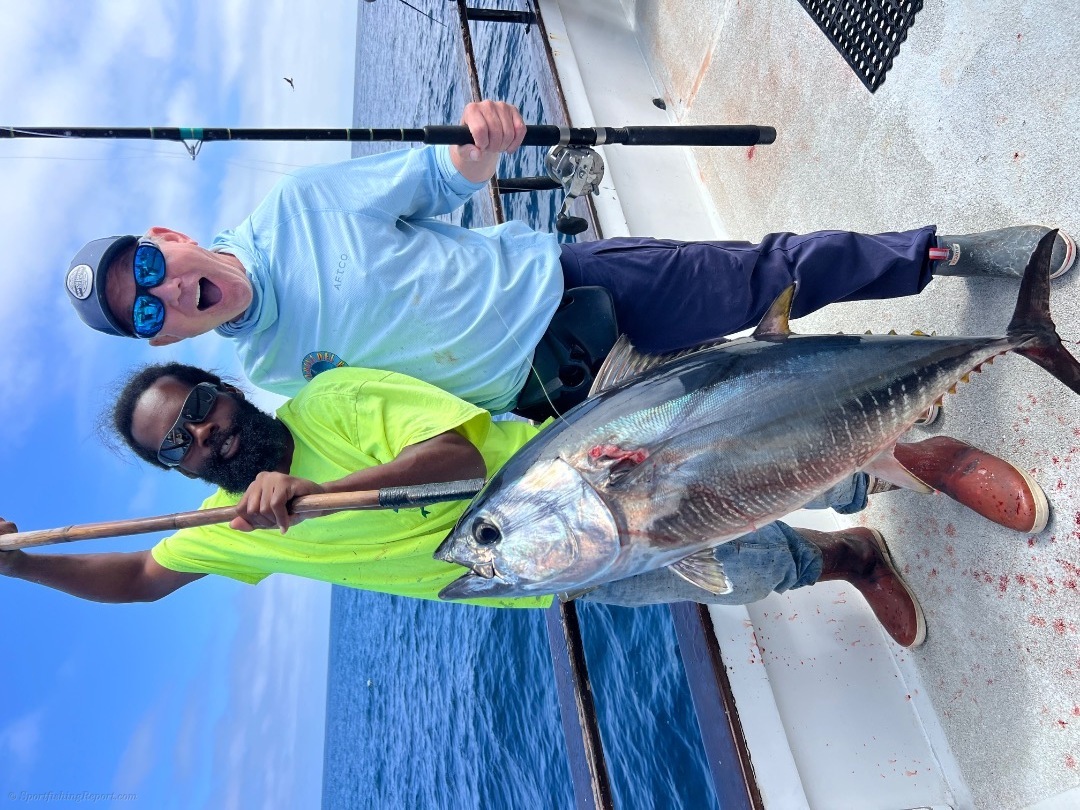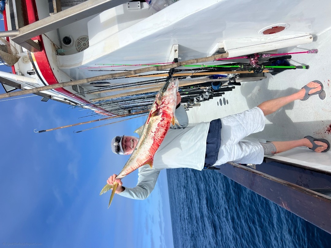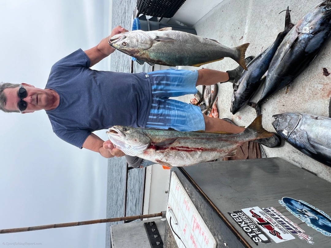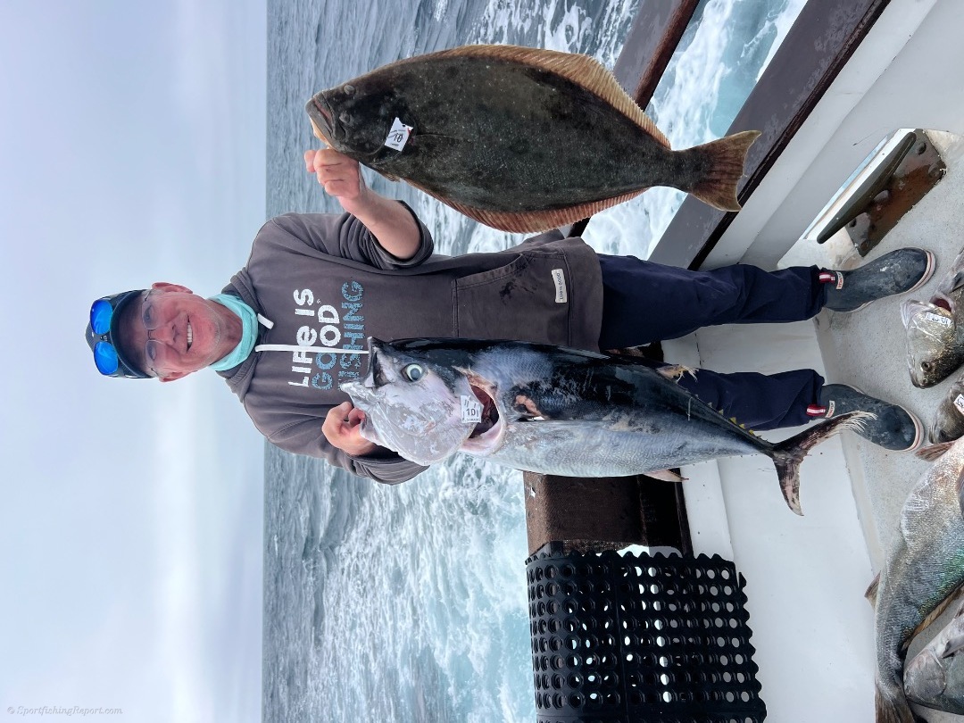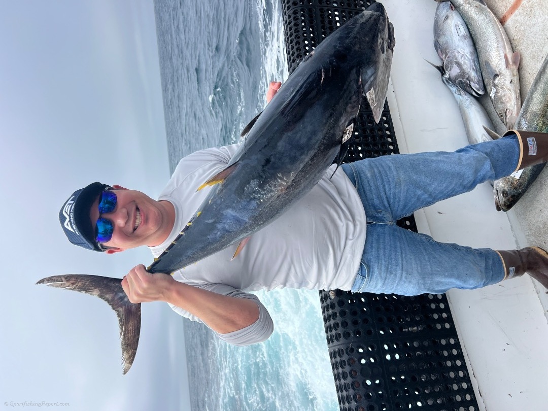 We started out tuna fishing on our 2 1/2 day trip. We found a school of 25 to 40 pound fish. We landed 25 of them. We mailed around the rest of the day trying to come up with more tuna, but we're unable to complete the task. We then took off for the island where we ran into white Seabass and yellowtail and all the items that you can catch at the island an excellent trip out on the water for our 16 guys on our 2 1/2 day trip