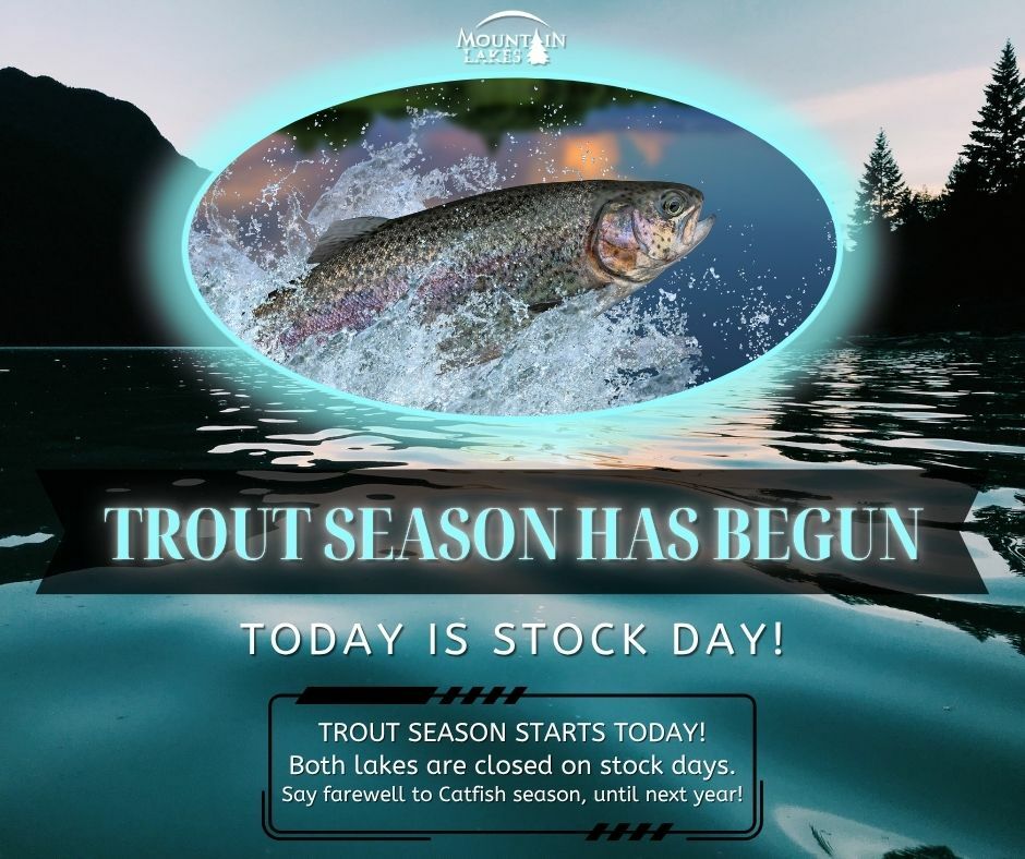 TROUT SEASON HAS BEGUN! Today is the first Trout stock of the season! Both lakes are closed for the day to stock trout. Fishing resumes Friday morning.