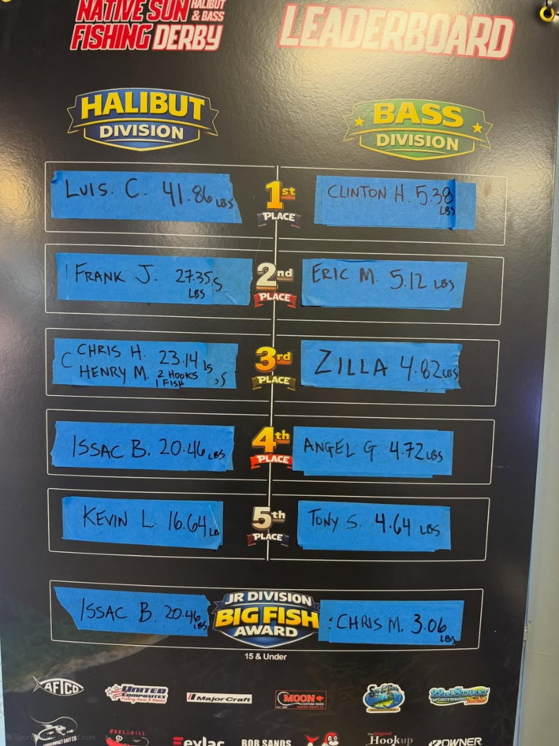 Halibut and leader board as of 3/20/26