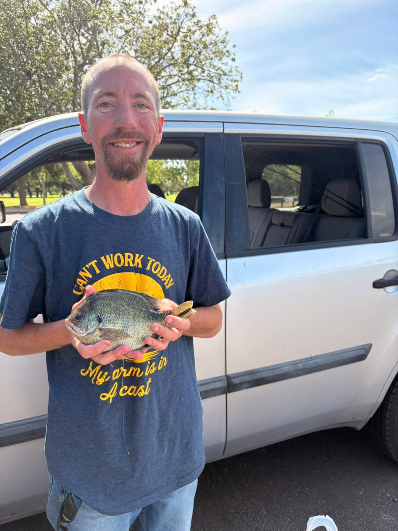 Tim & his dad were fishing today and caught this bluegill using hotdogs! Nice catch guys! #golakeskinner #lakeskinnerrecreationarea #lakeskinner #fishing