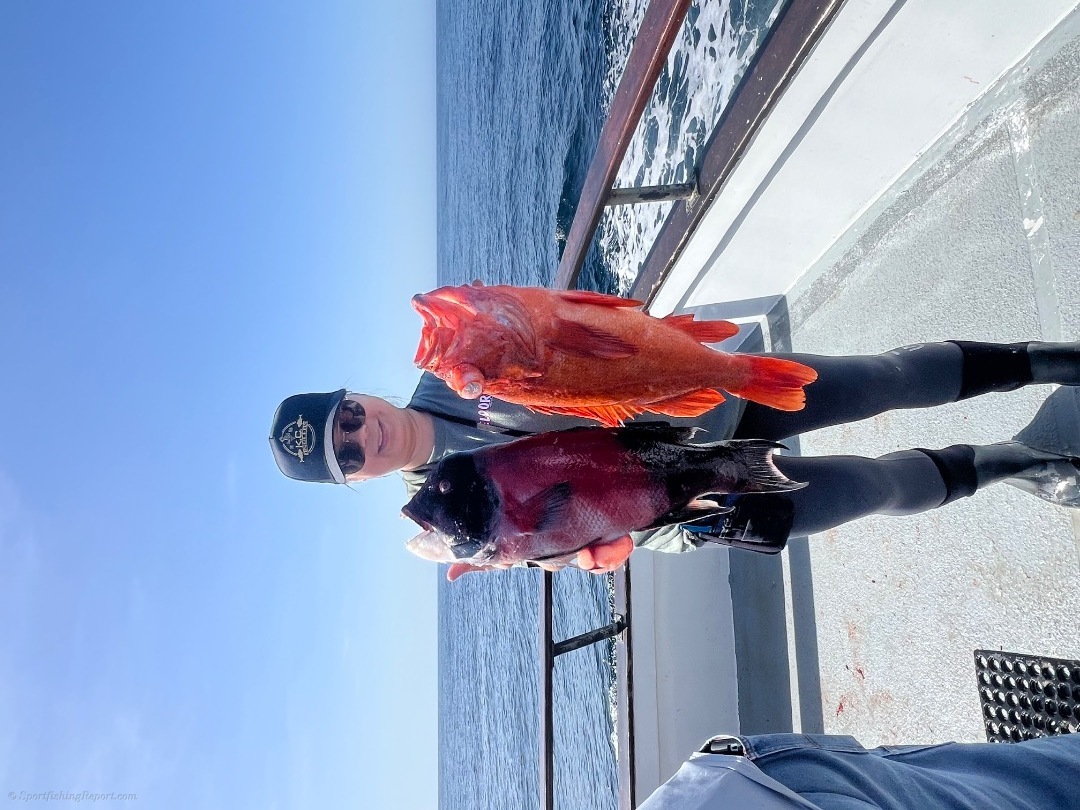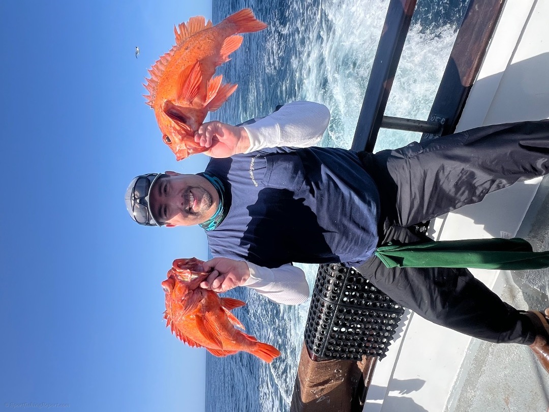 Find an exciting day of fishing, took our group and went to the west Santa Ana conditions have laid down the seas and turned the bite on. We fished in the shallows for white fish and sheep head, and then moved out to a little deeper water for Linde reds star eyes Bosco's widows and everything else that wanted to bite bags are full and we're headed home.
